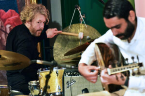 Fünf Musiker trafen sich unvorbereitet, spontan und brachten musikalisch Kulturkreise zusammen. Dazu kam der Journalist und Zeichner Henning Bolte aus Amsterdam, der Bilder während des Konzertes entstehen ließ, die als Projektion fuer die Zuhörer sichtbar wurden. Ausserdem ergänzete Rebecca Tonet mit ihrer Videoinstallation die musikalische Begegnung.