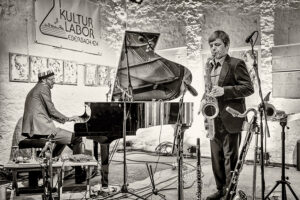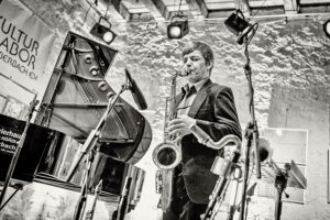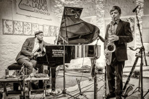 Paul Desmonds „Take Five“ war ein Paradebeispiel für das Herangehen von „Random Control“ an die Jazztastandards: das Thema natürlich deutlich erkennbar aber mit abgedrehter Rhythmik und Harmonik, skurrilen Einwürfen der Solisten, und einer Interpretation im besten Sinne macht das Trio daraus sein eigenes Ding. Die zahlreich aufgelaufene Zuhörerschar war begeistert und kitzelte zwei Zugaben heraus.