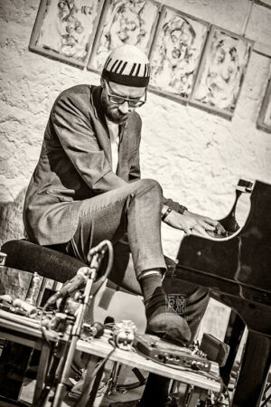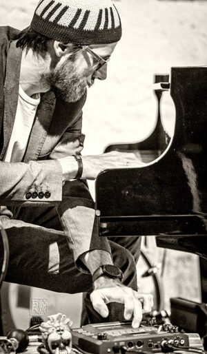 David Helbock gehört zu den Musikern, die mich mit einem ersten Livekonzert sofort begeistert haben. Das war seinerzeit beim Jazzfestival in Saalfelden, als er mit Schlagzeuger Christian Lillinger 2013 das Eröffnungsprojekt bestritt. Ein Schlagzeug braucht er mit seinem seit Jahren eingespielten Trio „Random Control“ nicht. Mit den zwei Extrem-Multiinstrumentalisten, Andreas Broger an diversen Holzblasinstrumenten und Johannes Bär zuständig fürs Blech, war genug Rhythm’n’Groove in der Musik. Ganz davon abgesehen, dass Helbock selbst Perkussives beizusteuern wusste.