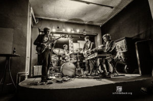 In Mannheim spielten sie Surf-Klassiker und vor allem Eigenkompositionen ganz im Geiste der Originale und mit dem „Expressway Sketches proven concept“, nicht mehr als 10 Minuten auf eine der Eigenkompositionen zu verschwenden. Das mag man glauben oder nicht. Auf jeden Fall eine wunderbar rasante Band und natürlich gehören bei Herren aus der Elite der deutschen Jazzmusik neben dem authentisch-groovigen Surfsound und Surfsoundfeeling trickreiche rhythmische Verschiebungen und gewagte harmonische Zerlegungen mit zum Spiel. Oder auch der Blues „Seductive Wave“ mit ganz dünnem Surf-Kleidchen.