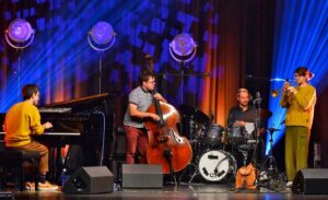 Manfred Rinderspacher war am 5. Oktober beim Konzert von Dinosaur, einer jungen Elektrojazz-Band aus Grossbritannien. 2010 gegründet, ist sie inzwischen eine gefragte Truppe in ganz Europa. Ausgezeichnet 2015 mit dem „Rising Star“ bei den British Jazz Awards . Die Musiker um die Komponistin/Trompeterin Laura Jurd glänzen auf ihren Konzerten mit ungeheurer Spielfreude und Originalität.