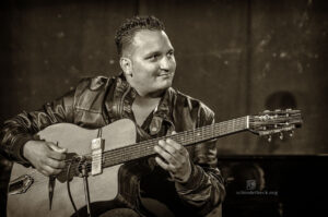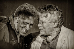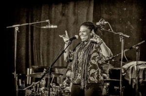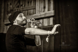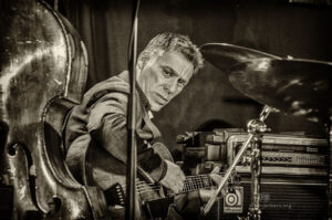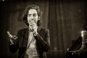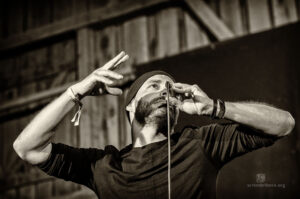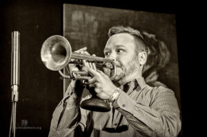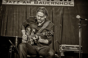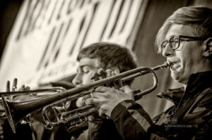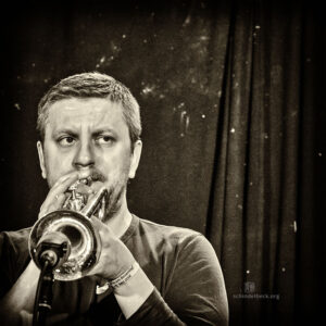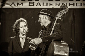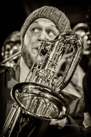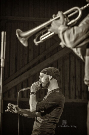 Überhaupt: wirklich begeistern konnten vor allem jene Bands, die ganz unabhängig vom Stil mit Begeisterung und Verve auftraten. Das begann bereits mit dem Rosenberg Trio und das folgende Trio mit Andreas Schaerer aus der Schweiz und den, aus dem Umfeld der Jazzwerkstatt Wien kommenden, Musikern Peter Rom (gt) und Martin Eberle (tp) konnte diese Begeisterung auf und vor der Bühne noch steigern. Virtuose Solisten und Komponisten mit einem Andreas Schaerer, der expressiv und mit überbordender Dynamik alles Mögliche an Tönen aus seinem Körper herausholt. Gesang und Geräusche, mal schnell den Part der Trompete übernommen während Eberle dafür die Schlagzeugbesen aus der Trompete pustet. Das hat Witz, Rasanz und ist bei allen komischen Elementen – ein Titel, der im Wesentlichen nur aus Schlussfloskeln anderer zusammengesetzt wurde nur als Beispiel – musikalisch virtuos. Kein Wunder, dass es die Zuhörer, entzückt von der Leichtigkeit des Auftritts und derart musikalischer Brillanz, nicht auf den Stühlen hielt und es den Höhepunkt des Festivals mit Standing Ovations feierte.