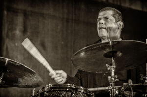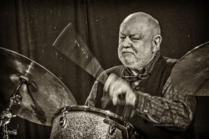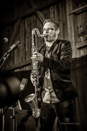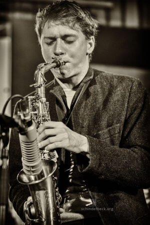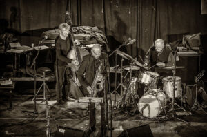 Das Trio mit Gerd Dudek (sx), Ali Haurand (b) und Daniel Humair (dr) war auf dem Papier ein Jazzleckerbissen am Schlusstag des Festivals. Zwar wirkte Ali Haurand am Bass deutlich munterer als bei seinen Ansagen und die drei Granden der Improvisationsszene Europas spielen natürlich immer noch auf höchsten Niveau, doch beschleicht einen ein wenig das Gefühl, dass man es mit einer aussterbenden Art von Jazzkonzept zu tun hat. Elaborierte Soli reiherum – gegen die experimentellen, den traditionellen Jazzbegriff stark erweiternden Ansätze einiger der Festivalbands wirkt das etwas aus der Zeit gefallen – vielleicht durfte man aber auch einen der letzten Felsen in der Brandung der Beliebigkeit dessen, was sich im Jazz-Ozean tummelt, bewundern.