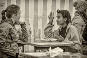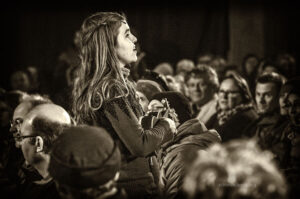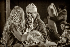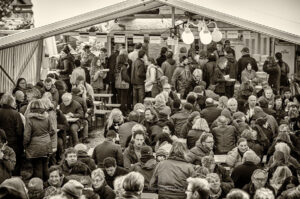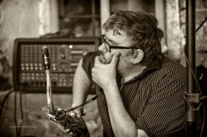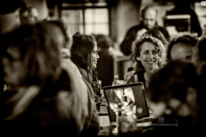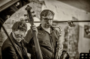Die wiederkehrenden Besucher erkennt man am angemessen winterlichen Outfit, die anderen bekommen gegen Bibberattacken notfalls kostenlose Leihdecken. Trotzdem: wenn selbst die Musiker auf der Bühne frieren, dann sollte man sich vielleicht überlegen, nicht doch irgendeine rudimentäre Heizmöglichkeit zu installieren oder das Festival etwas in Richtung Sommer zu verschieben. Vielleicht gehört aber auch das zum authentischen Feeling der INNtöne-Familie – gemeinsames Frieren schweißt zusammen. Interessant, wer alles aufläuft: Jazz-, Musik- und Kulturinteressierte im weiteren Sinn aber auch Ex-Moersler, die vor Jahren den Spaß dort verloren haben und die familiäre Atmosphäre und die stilistische Vielfalt der INNtöne zu schätzen wissen – oder selbst nicht so genau wissen, warum sie in Diersbach gelandet sind.