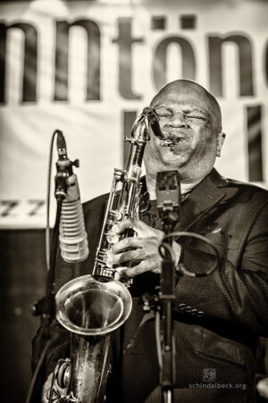 Enthusiastisch reagierte das Publikum auf das israelische Gadi Lehavi Trio, dessen Namensgeber und Pianist am Schlusstag auch Kirk Lightsey im Quartett des Saxophonisten Azar Lawrence beim Projekt „Tribute to McCoy Tyner“ vertrat. Die Ursache dieser Begeisterung ist ein wenig rätselhaft. Gewiss, da musizieren drei hörbar exzellent ausgebildete junge Musiker. Jeder Ton sitzt, Shachar Elnatan streichelt sein Schlagzeug behutsam und Tal Mashich zupft vorsichtige Akzente. Alles sehr distinguiert und geschmackvoll aber könnte man den jungen Herren verraten, dass Samthandschuhe im Jazz gelegentlich ausgezogen gehören und sublimierte Jazzgeschichte auf Dauer kein Konzept für Entwicklung ist? Auch beim Tribute-Konzert von Lawrence am kommenden Tag vermisste man das zupackende Moment am Flügel, was gerade bei einer Hommage an McCoy Tyner zu erwarten gewesen wäre. Der dynamische Kopf der Band, Azar Lawrence an den Saxophonen, konnte hingegen auf ganzer Linie überzeugen, mit spirituell-kraftvollem Sound der an Coltrane und noch mehr an George Adams erinnerte.