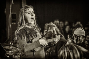 Ausgesprochen gut kam beim Diersbacher Publikum auch das Solo-Konzert von Dom La Nena an. Die junge Frau mit brasilianischen Wurzeln eroberte mit mädchenhaftem Charme das Publikum im Handumdrehen. Musikalisch war ihr Auftritt nur begrenzt überzeugend. Das live Aufnehmen von Patterns und der schichtweise Aufbau dieser Klänge und Rhythmen in Loops ist zwar technisch verblüffend gut gemacht, der Aha-Effekt verfliegt aber schon beim zweiten Stück dieser Machart. Ansonsten greift die junge Dame zu verschiedenen Instrumenten, lässt das Publikum singen und wenn es schon nicht tanzen will, muss es sich wenigstens von den Stühlen erheben. Ein wenig albern wird’s dann doch, wenn sie mit LED-beleuchteter Minigitarre durchs Publikum wandelt. Aber wer da böses schreibt, der schlägt wohl auch junge Hunde…