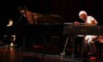 Als typisches Charakteristikum der österlichen Jazztage in Stuttgart bleibt, dass vertraute Künstler-Freunde des renommierten Theaterhauses eine konzertante Geburtstagsfete abfeiern dürfen. Bei der niveauvollen Eröffnungsveranstaltung war wieder Joachim Kühn der Glückliche. Hatte der zwischen zarten Impressionismen und vehementer Ekstase agierende Pianist vor fünf Jahren bei seinem 70ten noch die Altmeister Archie Shepp und Michel Portal im Schlepptau, so scharte der am 15. März 1944 in Leipzig Geborene arrivierte Newcomer um sich. Aber sein bald 90-jähriger Bruder Rolf Kühn (* 29.09.1929) gehörte beides Mal zu den beherzten Gratulanten – bewundernswert, wie kraftvoll und konzentriert der Klarinettist nach wie vor seine bebopartigen Linien präzise phrasiert und artikuliert.