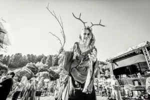 Die Handschrift des Festivals hat sich verändert: Der Technikplatz ist doppelt so groß geworden, die ikonischen Pilze links und rechts der Bühne sind den Fahnen des veranstaltenden Fußballvereins gewichen. Gelegentlich wurden wackenartige Flammensäulen in den Himmel gestemmt. Doch die örtlichen Kuchenbäckerinnen sind immer noch da, ebenso der bunte Mix aus alternativen Nippes-Ständen und gebrauchten Schallplatten. Und neu: Zwei charmante Stelzenläuferinnen und schillernde Riesenseifenblasen von Art Artistica machten das Gelände noch bunter und sorgten für zusätzliche Festivalstimmung.