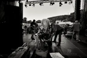 Das Set war historisch gefärbt und zündete von Beginn. Vom neuen Album The Incredible Universe of Guru Guru gab es den jazzorientierten Titel Free Krautrock!, ansonsten zahlreiche Klassiker, die zur DNA des Festivals gehören: „Living in the Woods“, der „Elektrolurch“. Peter Kühmstedt glänzte als „Rock’n’Roll Machine“, es gab den „Iddli Killer“ – und das Publikum auf dem dicht gedrängten Sportplatz feierte begeistert. Einziger Wermutstropfen: Roland Schaeffer hatte seine Nadaswaram, von Kühmstedt gern „indische Tröte“ genannt, nicht dabei. Doch als Saxophonist ist er ohnehin eine Klasse für sich.