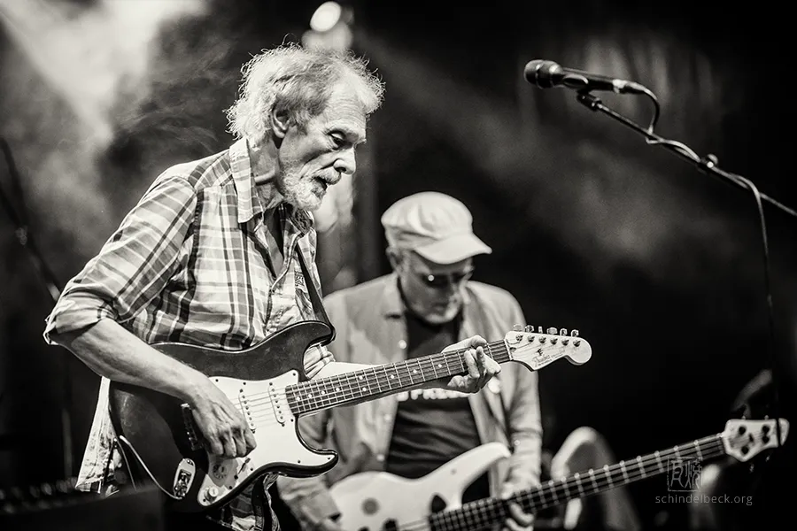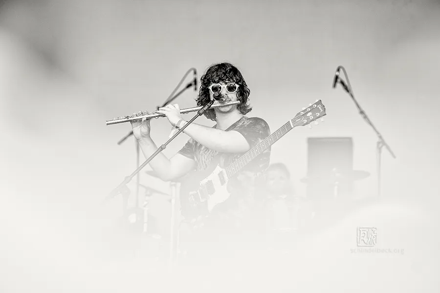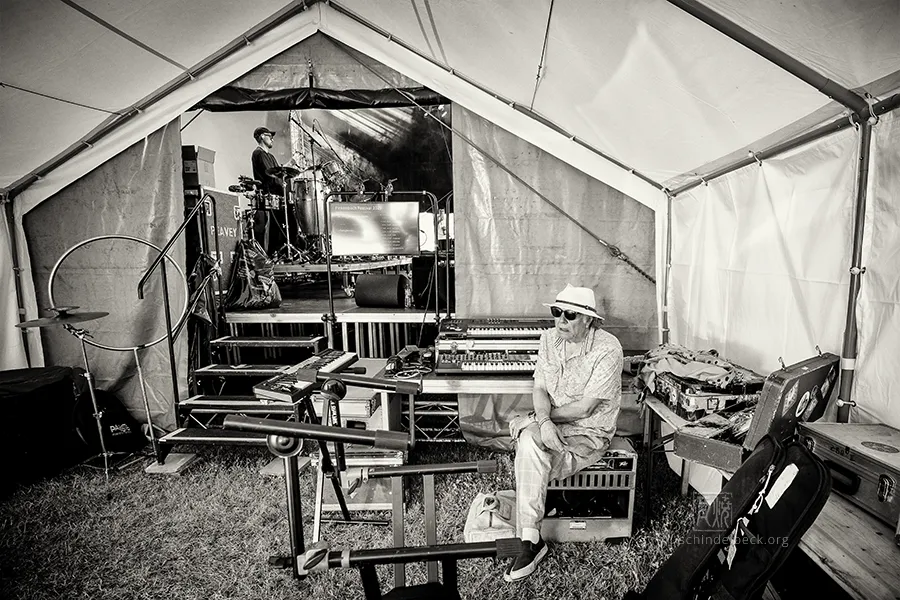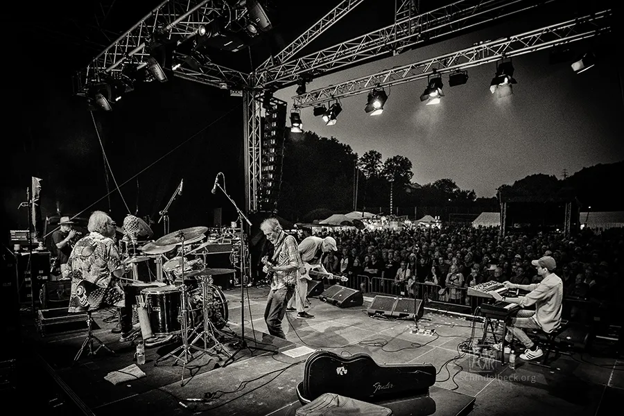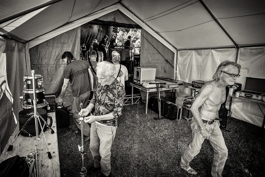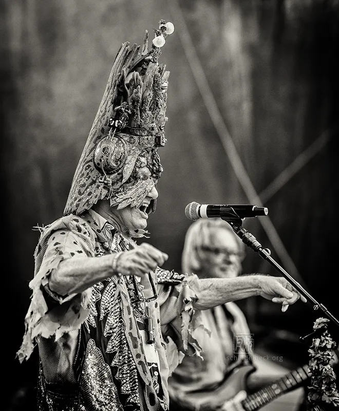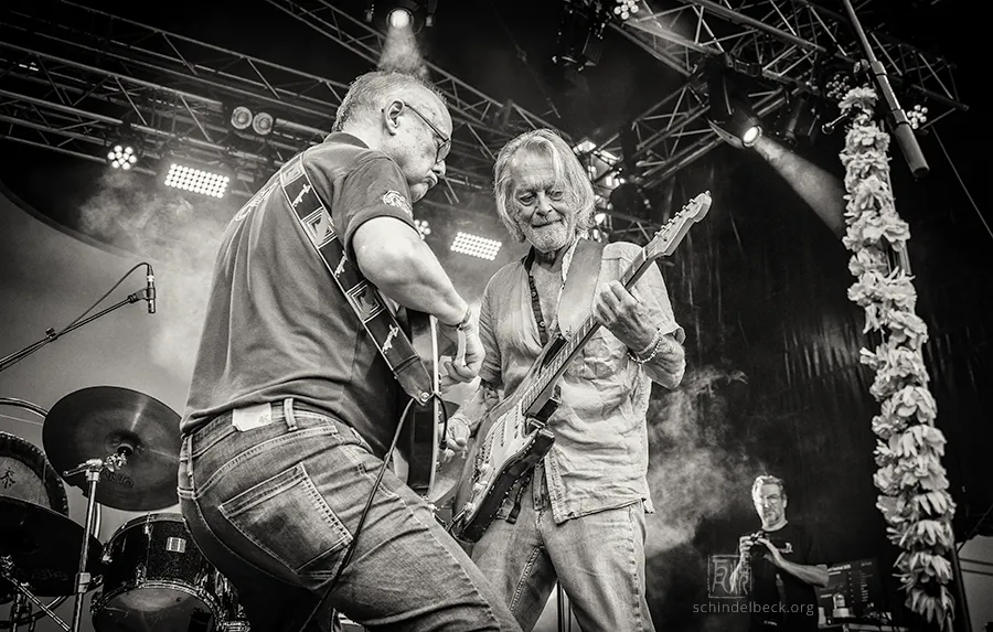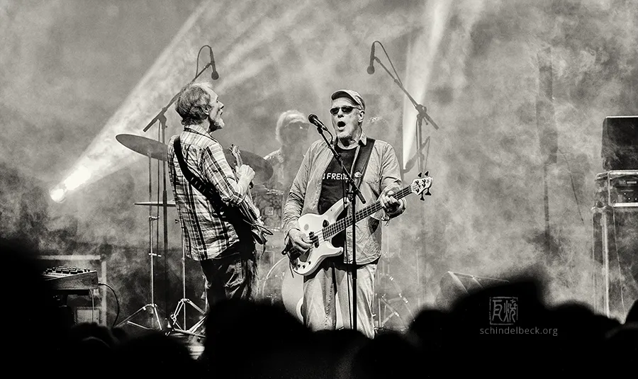 Das Set war historisch gefärbt und zündete von Beginn. Vom neuen Album The Incredible Universe of Guru Guru gab es den jazzorientierten Titel Free Krautrock!, ansonsten zahlreiche Klassiker, die zur DNA des Festivals gehören: „Living in the Woods“, der „Elektrolurch“. Peter Kühmstedt glänzte als „Rock’n’Roll Machine“, es gab den „Iddli Killer“ – und das Publikum auf dem dicht gedrängten Sportplatz feierte begeistert. Einziger Wermutstropfen: Roland Schaeffer hatte seine Nadaswaram, von Kühmstedt gern „indische Tröte“ genannt, nicht dabei. Doch als Saxophonist ist er ohnehin eine Klasse für sich.