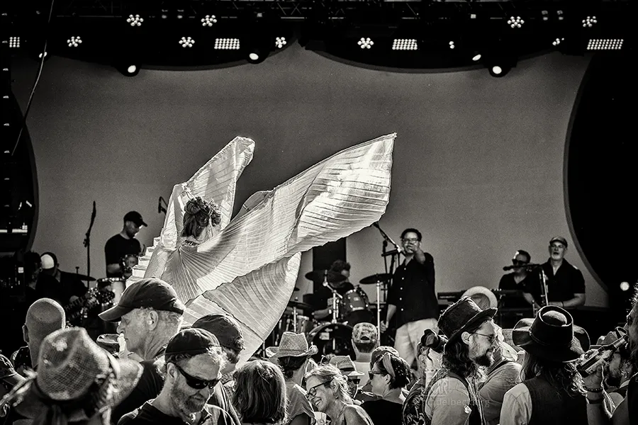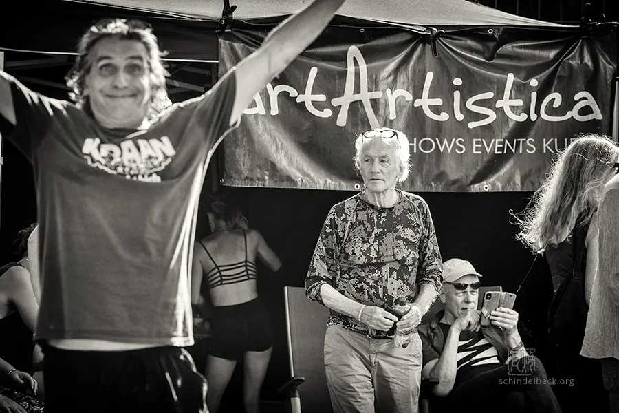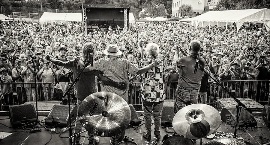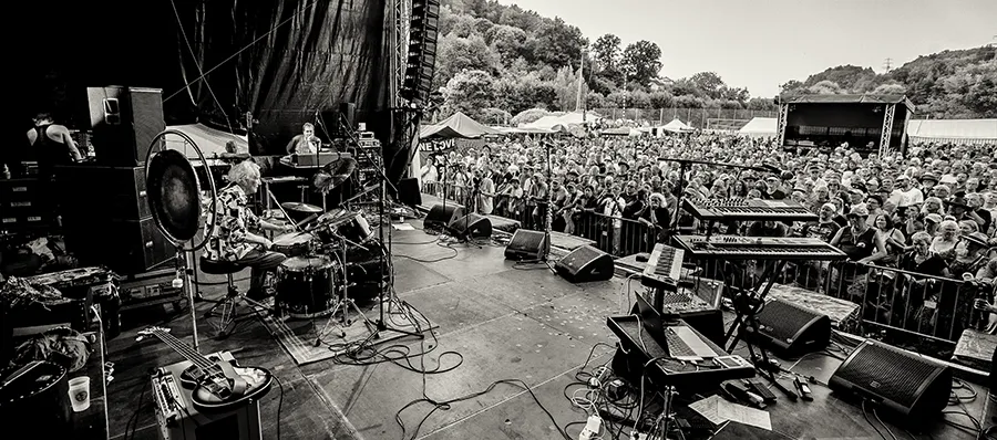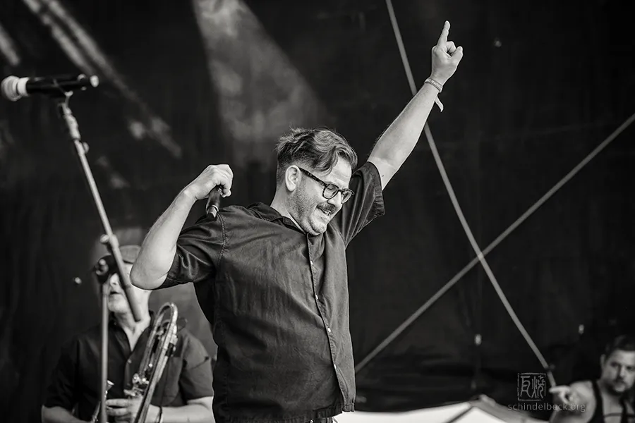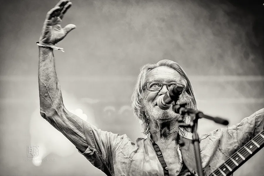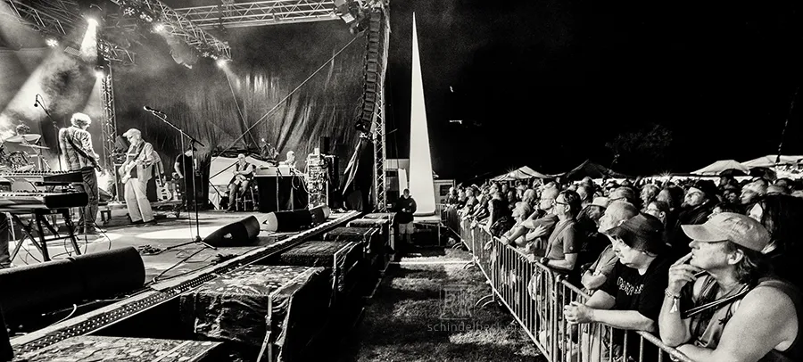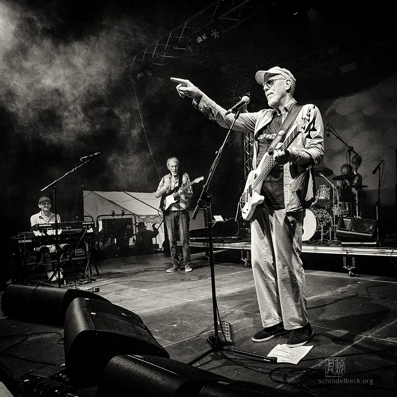 Das Set war historisch gefärbt und zündete von Beginn. Vom neuen Album The Incredible Universe of Guru Guru gab es den jazzorientierten Titel Free Krautrock!, ansonsten zahlreiche Klassiker, die zur DNA des Festivals gehören: „Living in the Woods“, der „Elektrolurch“. Peter Kühmstedt glänzte als „Rock’n’Roll Machine“, es gab den „Iddli Killer“ – und das Publikum auf dem dicht gedrängten Sportplatz feierte begeistert. Einziger Wermutstropfen: Roland Schaeffer hatte seine Nadaswaram, von Kühmstedt gern „indische Tröte“ genannt, nicht dabei. Doch als Saxophonist ist er ohnehin eine Klasse für sich.