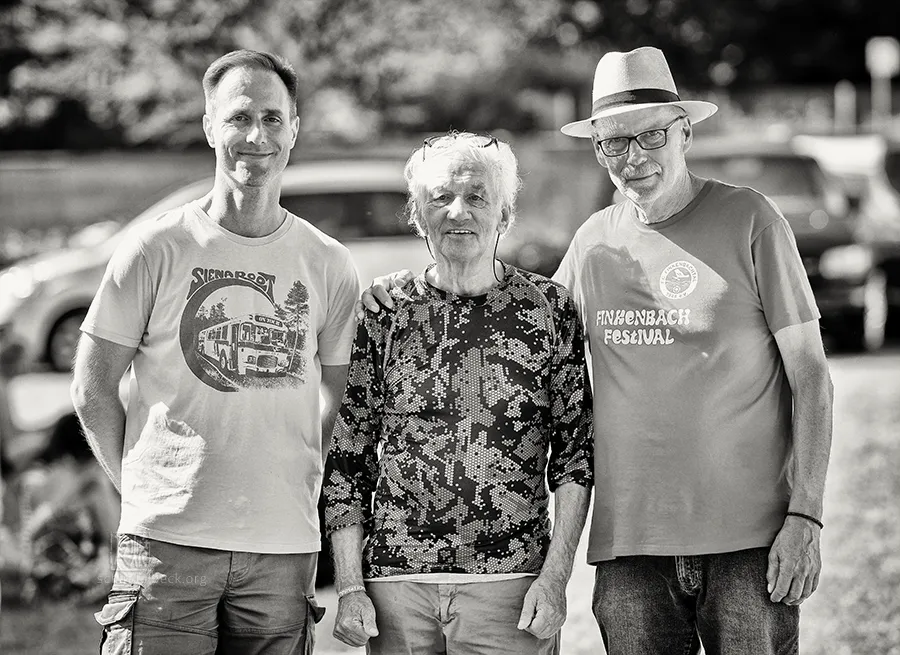Die Anfahrt war wie früher: durchs Neckartal, in Hirschhorn links ab und noch ein paar Kilometer in den Odenwald. Am Finkenbach-Wochenende wirkt das kleine Dorf, als müsse es den Verkehr eines ganzen Jahres schultern. Mit im Auto ein Begleiter, der den „Elektrolurch“ – Mani Neumeiers „Volt, Watt, Ampere, Ohm – ohne mich gibt’s keinen Strom“ aus dem Effeff zitieren kann, den Meister selbst aber noch nie live erlebt hatte.
