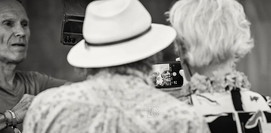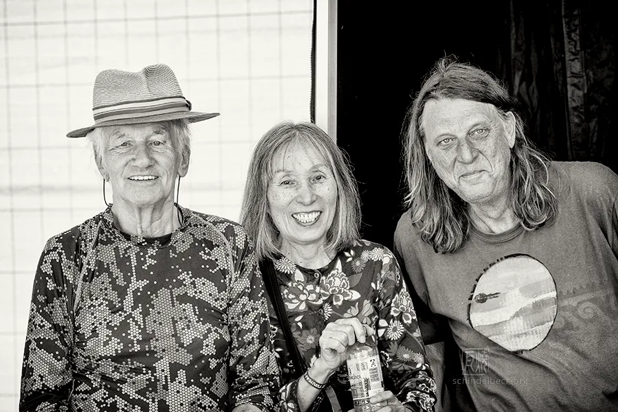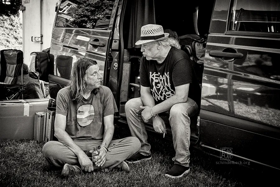 Nach dem Konzert war schön zu sehen, wie viele alte Fans wieder mit Mani Neumeier und den Musikern ins Gespräch kamen. Auch backstage war die Stimmung bestens, und natürlich saßen Neumeier und Hellmut Hattler zusammen – kein Wunder bei einer jahrzehntelangen Freundschaft zwischen den Musikern von Guru Guru und Kraan.