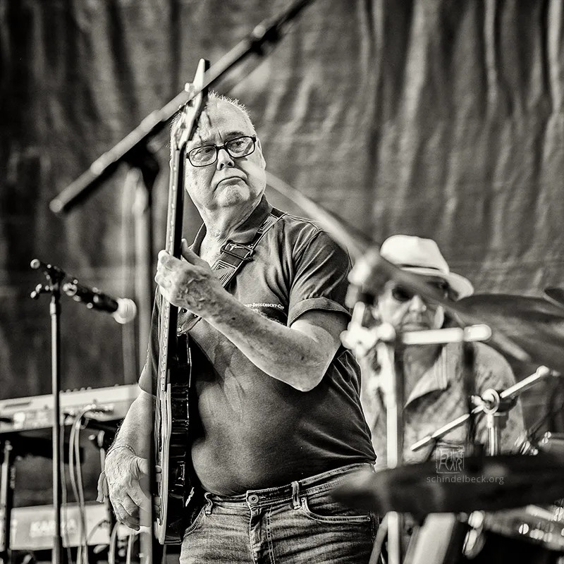 Ein Höhepunkt des Festivals danach das Konzert von Kraan. Das Trio – ergänzt durch Keyboarder Martin Kasper – ist legendär: Hellmut Hattler am E-Bass, Peter Wollbrandt an der Gitarre und Jan Fride am Schlagzeug spielen seit Schulzeiten zusammen und diese enge Verbindung ist in Ihrer Musik ständig präsent. Hellmut Hattlers Basslinien sind fließende Ströme, die das Fundament legen und oft eigene Melodien erzählen. Sein Groove ist erdig und elastisch, mal treibend, mal schwebend – und macht den Bass zum eigentlichen Erzähler der Musik. Jan Fride ist das rhythmische Rückgrat– sein Schlagzeugspiel verbindet Präzision mit feiner Dynamik und schafft Raum für die mäandernden Linien von Bass und Gitarre. Sein Bruder Peter Wollbrandt an der Gitarre balanciert zwischen klarer Rock-Kante und jazziger Offenheit. Sein Spiel ist oft lyrisch – ein erkennbares Markenzeichen der Band. Für die jazzaffinen Menschen im Publikum: ein Fest.