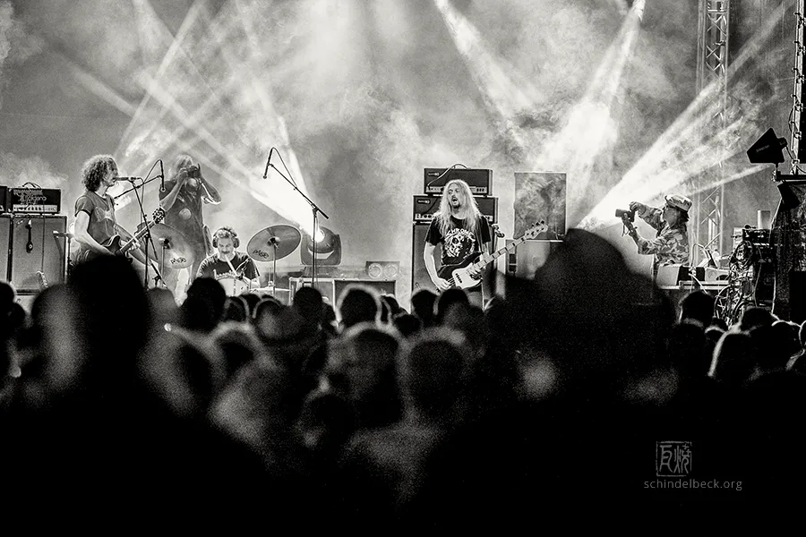 Wer danach musikalische Erdung brauchte, fand sie bei Colour Haze. Hypnotischer Psychedelic-Stoner-Rock, getragen von Stefan Kogleks Gitarre und Gesang, Mario Oberpuchers Bass, Jan Faszbenders Keyboards und dem druckvollen und erstaunlich variablen Schlagzeug von Manfred „Mani“ Merwald. Die Münchner zählen seit den 1990er-Jahren zu den festen Größen der Szene – passender konnte Musik für den späten Samstagabend kaum sein.