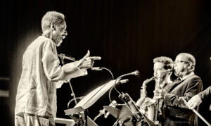 Deutlich dynamischer und jazzbezogener wirkte der zweite Act des Mittwochs. Henry Threadgill war mit seinem aktuellen Ensemble „Double-Up“ zu Gast. Das Doppelquartett mit zwei Flügeln spielte großflächig angelegten orchestralen Jazz und Threadgill dirigierte die Jazz Suite vom Bühnenrand, nur selten begab er sich in deren Zentrum um die Band dann mit großzügigen Gesten zu dirigieren. Trotzdem: das Ganze wirkt statisch, allzu viele Freiheiten gab es fürs Ensemble nicht und wenn sich Herr Threadgill als Zuhörer ins Publikum begeben hätte, wäre der Abend mit dem routiniert aufspielendem Ensemble wohl nur unwesentlich anders verlaufen. Nicht übel aber doch eher unerwartet solide Jazz-Hausmannskost mit Bezügen zur Jazzgeschichte, gelegentlich gespickt mit netten solistischen Highlights und kräftigen Tuttis.