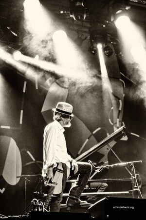 Ins Experimentelle wies dann wiederum das Zusammentreffen der Electronica-Noise und Soundtüftelspezialisten von RADIAN mit dem Americana-Sänger Howard Gelb. In der Programmankündigung als „risikofreudige“ Kombination angekündigt, blieb die Kombination zunächst aus, denn RADIAN bestritt den Beginn des Konzerts allein, bevor Gelb sich ins Geschehen warf. Ganz geglückt erschien dieses Experiment letztlich nicht: zu sehr spielten die beiden Parteien ihre jeweils eigene Musik und die Synthese konnte nur stellenweise überzeugen. RADIAN lieferte zwar einen interessanten Soundtrack zu Gelbs Songs aber eher selten verschmolz das zu einem schlüssigen Gesamtwerk. Und so konnte man Howe Gelbs Solopassage, mit dessen eigener lupenreiner Stride-Piano Begleitung, schon fast als gewolltes Absetzen gegen den eher technisch geprägten Ansatz von RADIAN hören. Im gemeinsamen Moon River steigerte sich die Kombination allerdings zu einem furiosen Finale.