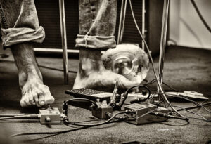 Eine Mann, eine Gitarre, eine große Bühne – und dann singt er seine „Protest Songs“. Marc Ribot war am Sonntag-Mittag die Mini-Vorgruppe für Steve Coleman & Five Elements. Den Jazz-Afficionados schenkte er kurze Passagen seines grandiosen Gitarrenspiels, die Freunde skurrilen Humors durften sich beschenkt fühlen, mit abgedrehten Geschichten und Beobachtungen, die vom gesungenen Touristenführer für das Empire State Building über die wenig jugendfreie Beschimpfung von Santa Claus bis zur Storiy über Drogenschmuggler reichte, die als Nonnen verkleidet scheitern. Was er anfasst, macht er gut und so kann Ribot auch als Selfmade Singer-Songwriter überzeugen. Und ja, dann gab es auch noch klassische Protestsongs, wie „Masters of War“ von Bob Dylan.