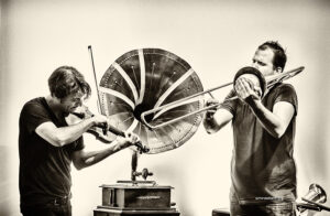 Die kleinen, spannenden Projekte mit unterschiedlichem Jazz- aber großem experimentellen Anteil konnte man bei den täglichen „Intimities“ von Freitag bis Sonntag erlauschen, einige Meter ausgelagert in der Innenstadt. Das grandiose Pocket Swing Orchestra – ein vielleicht einen Hauch großspuriger Name für das Duo des Posaunisten Michael Flury und des Violinisten Tobias Preisig – spielte nicht nur „Creep“ von Radiohead sondern hatte auch ein Grammophon der größeren Sorte mitgebracht und die Improvisationen zu Original-Schellackplattenaufnahmen, z.B. von King Oliver, waren nicht nur originell sondern auch musikalisch überzeugend.