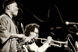 Das erste Abendkonzert am Samstag bestritten Bänz Oester & The Rainmakers. Diese Band wickelte das Publikum spätestens mit ihrem adaptierten Schweizer Liedgut um den Finger, brachten aber auch sonst eine begeisternde Session auf die Bühne, die in ihren besten Momenten an die „neoklassischen“ Bands wie das Adams-Pullen Quartett erinnerte oder an Abdullah Ibrahim und Pharoah Sanders in ihren besten Zeiten. Afrikanisch geprägter Modern Jazz, mit Verve gespielt und vom Publikum enthusiastisch aufgenommen.
