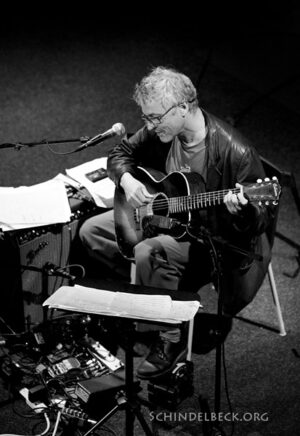 Marc Ribot gehört zu den er erstgenannten und er spielte am Samstag ein Solokonzert bei den Shortcuts. Ein Mann, eine Gitarre, eigentlich zwei Gitarren – die elektrische stand hinter ihm und wurde erst zur Zugabe angerührt – und bei keinem Konzert wurde deutlicher, wie netzlos man sich Musiker an die Improvisation heran tasten kann. Aus einfachen Phrasen spinnt er nach und nach immer komplexere Strukturen. Ruhige, freie Improvisationen, gewunden und komplex. Nur manchmal „ruht“ er sich in einfacheren Songstrukturen aus. Zur E-Gitarre greift er erst zur Zugabe, sinngemäß mit der lakonischen Bemerkung, dass er das Geraffel schließlich mühsam mitgeschleppt habe. Eine John Cage Komposition spielte er da noch – die allerdings gnadenlos übersteuert, die mich dann doch aus dem Raum getrieben hat…