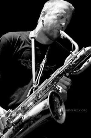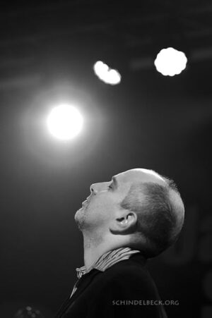 Was bei „Zu“ bei aller Vehemenz als kalkulierte Rohheit erscheint, wird beim schwedischen Saxofonisten Mats Gustafsson zur reinen Ekstase. Expression bis an die Grenze der physischen Möglichkeiten (Vorsicht, Blählunge!). Er trat mit seinem Trio Fire! ebenfalls bei den Shortcuts auf, gemeinsam mit Johann Bertling am Bass und Andreas Werliin an den Drums. Es hat etwas schamanenhaftes, wenn Werliin am Schlagzeug mit minutenlangen einfachen Schlägen auf die Basstrommeln einen einfachen Rhythmus vorgibt, der mit ein paar trockenen Basstönen hinterlegt wird. Ein spartanisch repetitiver Hintergrund für Mats Gustafsson. Und der lässt sein Saxophon brüllen als gäbe es kein Morgen.