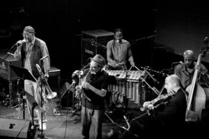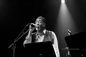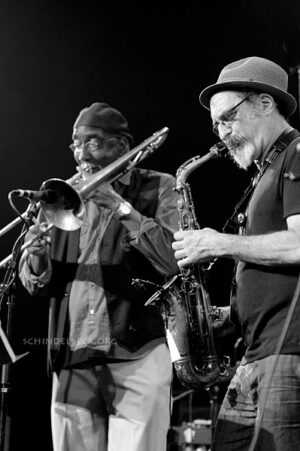 Mit auf der Bühne für zwei Stücke, der wohl jüngste Musiker des Festivals, Nathansons Sohn Gabe an der Trompete und als Backgroundsänger im Duett mit Posaunist Curtis Fowlkes. Musikalisch spannt sich der Bogen weit. Vom einleitenden ohrwurmverdächtigen „Love Train“ – gesungen von Curtis Fowlkes inklusive Background Chorgesang der Kollegenschar – bis hin zu relativ freien Jazz-Klängen, gewürzt mit eingespielten Samples und von Nathanson über die Musik rezitierten Gedichten – Jazz Poetry – und ansonsten ein abwechslungsreicher musikalischer Cocktail mit festen Wurzeln im Jazz.
