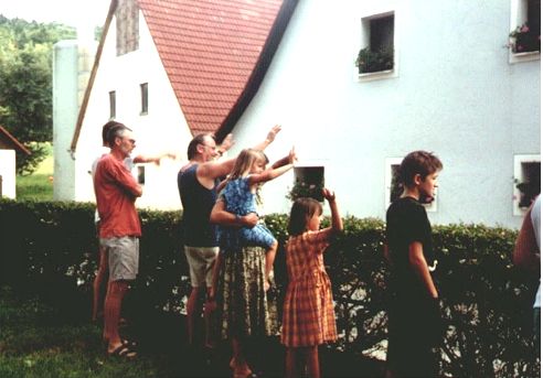 In der Wirtschaft in Waizenfeld konnte die Küche kaum der angeforderten Menge an Klößen gerecht werden ein aus Hamburg angereister Unersättlicher war erst nach dreien zufrieden. - Als es gegen vier Uhr ans Abschiednehmen ging, wurde Aufschub erzwingend darüber philosophiert, wie hart es uns ankomme, aus der wohltuenden, Schutz vermittelnden Gemeinschaft wieder hinausgestoßen zu werden in das Einzelschicksal in einer feindlichen Welt. Fällt Ihnen dabei auch, wie mir, "die Vertreibung aus dem Paradies" ein?Rosemarie Schröder |