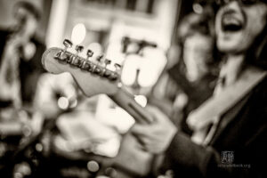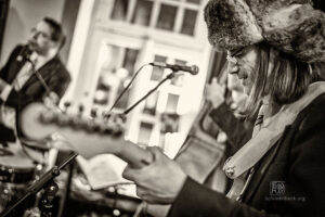 So wirklich erstaunlich war es dann doch nicht, denn die Jimi Hering Weihnachts Experience (Hering Cerin, dr / Dr. Michael Beutelspacher, gt / Rjiner aka The Electric Single Kid – Gesang&Rassel / Matthias Debus, b) beutete sich selbst aus, in dem sie das Maximum ihres Könnens dem Mannheimer Musikplebs vor die Ohren warf. Und diese Schar war voller Freude und Verständnis für Weihnachtlieder in leicht ungewohnten Versionen, und sie dankte es den Musikanten (Frauenanteil: Null – wo ist die berühmte UDJ-Quotenfrau, wenn man sie mal braucht?) mit Tanz, glücksfunkelnden Augen und diversen Zustimmungslauten.