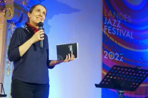 Die diplomierte Tonmeisterin und aktuelle Geschäftsführerin Bettina Bertók-Thumm berichtete lebendig und charmant beim Landesjazzfestival über die Historie und gegenwärtige Tätigkeit des renommierten Betriebs und beantwortete gerne geradezu fachmännische Fragen aus dem Publikum.