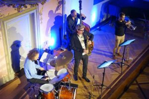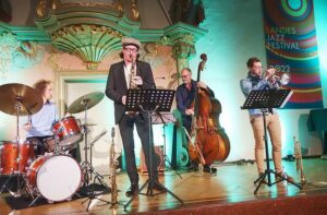 Anschließend trat Magnus Mehl, der Ende Mai 2021 in Ludwigsburg die Platte „Upside Down And Between“ einspielte, wieder in Hall auf, allerdings in neuer Besetzung. Der gewitzte Saxofonist, geboren 1980 in Rottweil, bereichert die Jazzszene stets mit höchst originellen Projekten, wenn er beispielsweise klassischen Tanz und zeitgenössisches Hörspiel einbezieht.