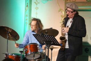 Auch mit dem „klassischen“ Bogen entlockte der vielseitige Fuhr seinem korpulenten Tieftöner subtile Klanggebilde als auch jaulende Glissandi wie von einem Theremin, und auf dem konventionellen Drumset entwickelte Ferenc Mehl reizvolle Sounds. Ein großer Gewinn für diese Formation von Magnus Mehl ist gewiss „sein Komperativ“ Christian Mehler, der virtuos und kraftvoll ins Horn schmettert.