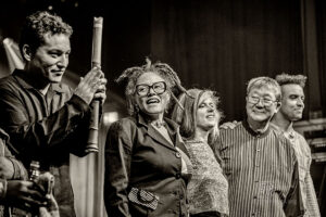Das Ensemble ist heterogen und hochklassig, und besticht mit seiner Variabilität. Wie in den großartigen Dialogen von Mitchells Querflöte und Kojiro Umezakis Spiel auf der Shakuhachi. Überhaupt: klangliche Farbenpracht von Cello bis Harfe – kumulierend im expressivem Gesang von Avery R. Young zum grandiosen Finale. Standing Ovations und als Zugabe ein „Peace-Song“ gemeinsam mit dem Publikumschor.