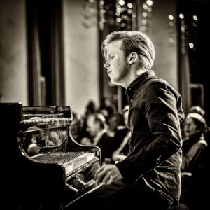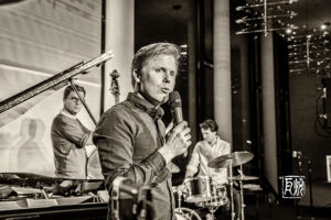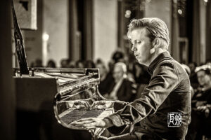 Fotos des Preisträgerkonzerts Jazzpreis Worms. Den Preis erhielt der Pianist und Komponist Volker Engelberth. Hier mit seinem Trio mit Arne Huber am Bass und Silvio Morger am Schlagzeug.