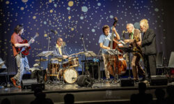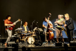 Die Band UNDERKARL mit Sebastian Gramss (b), Lömsch Lehmann (sx,cl), Rudi Mahall (cl), Frank Wingold (gt) und Dirk-Peter Kölsch spielte beim Gitarrensommer in Speyer am 16. September 2021 im Alten Stadtsaal in Speyer