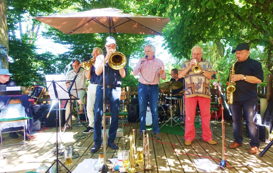 Zum Frühstück zünftige Weißwürste und Weizenbier für den Gaumen, vertraute Evergreens mit viel Improvisatorischem für die Ohren. Und da stiegen gerne noch rüstige Veteranen von den legendären Haller „Salt City Stompers“ mit ein. Eine derartige Jam-Session im Oktett-Format macht eben Spaß – den Musikern und dem Publikum.
